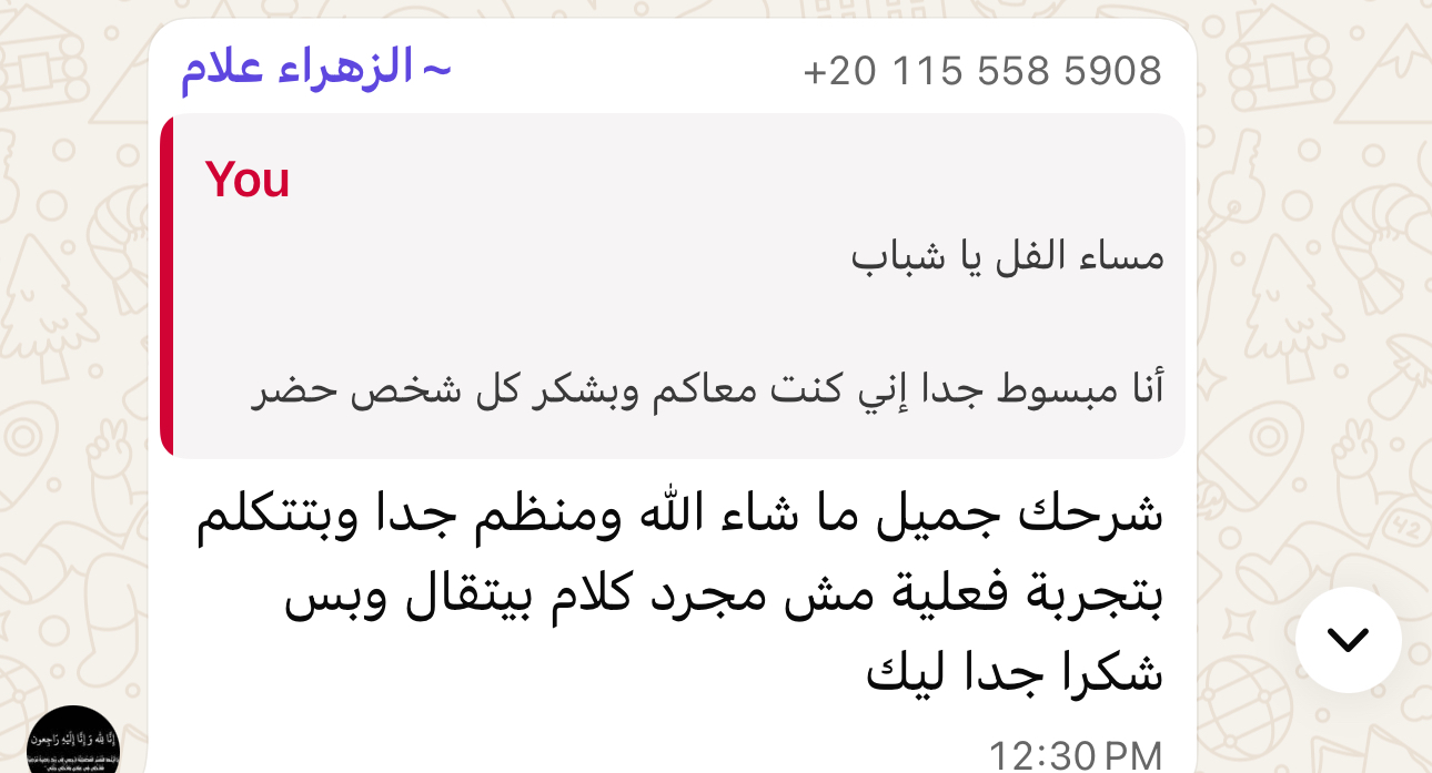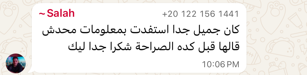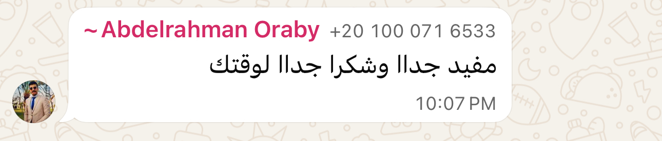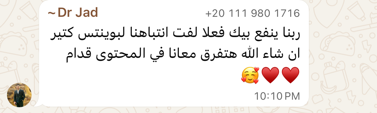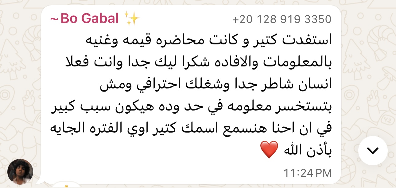 هتدخل جروب مغلق على تيليجرام مع عبدالله نفسه وفريقه لمدة أسبوع كامل بعد التحدي، ده حرفيًا أسبوع ذهبي عشان تضمن تطبيق كل اللي اتعلمته وتحقق نتائج سريعة ومضمونة