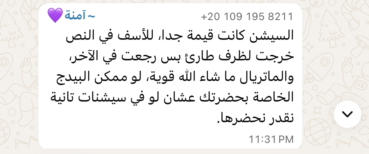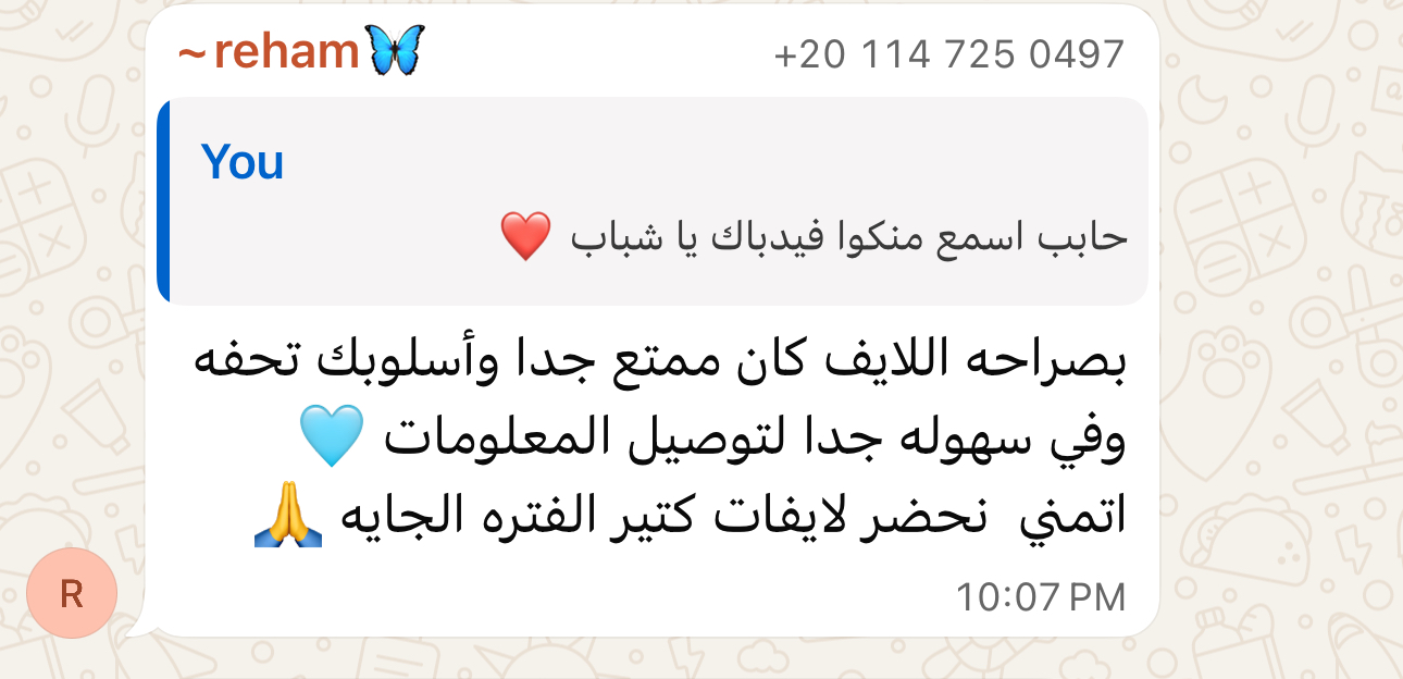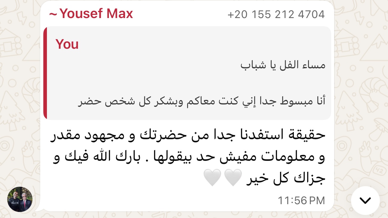 بمجرد ما تسجل وتتم عملية الدفع ونتاكد منها، هيوصلك إيميل او رسالة علي رقم الواتس آب فيها: