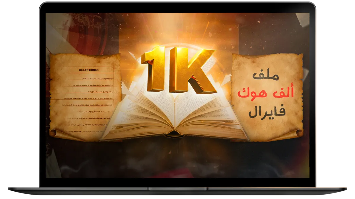 أكتر من 1000 هوك ناجح وجاهز تقدر تستخدمه، تعدله، وتبني عليه بداية أي فيديو، هيوفرلك شهور من البحث والتجارب ويخلي كل فيديو يوقف الاسكرول
